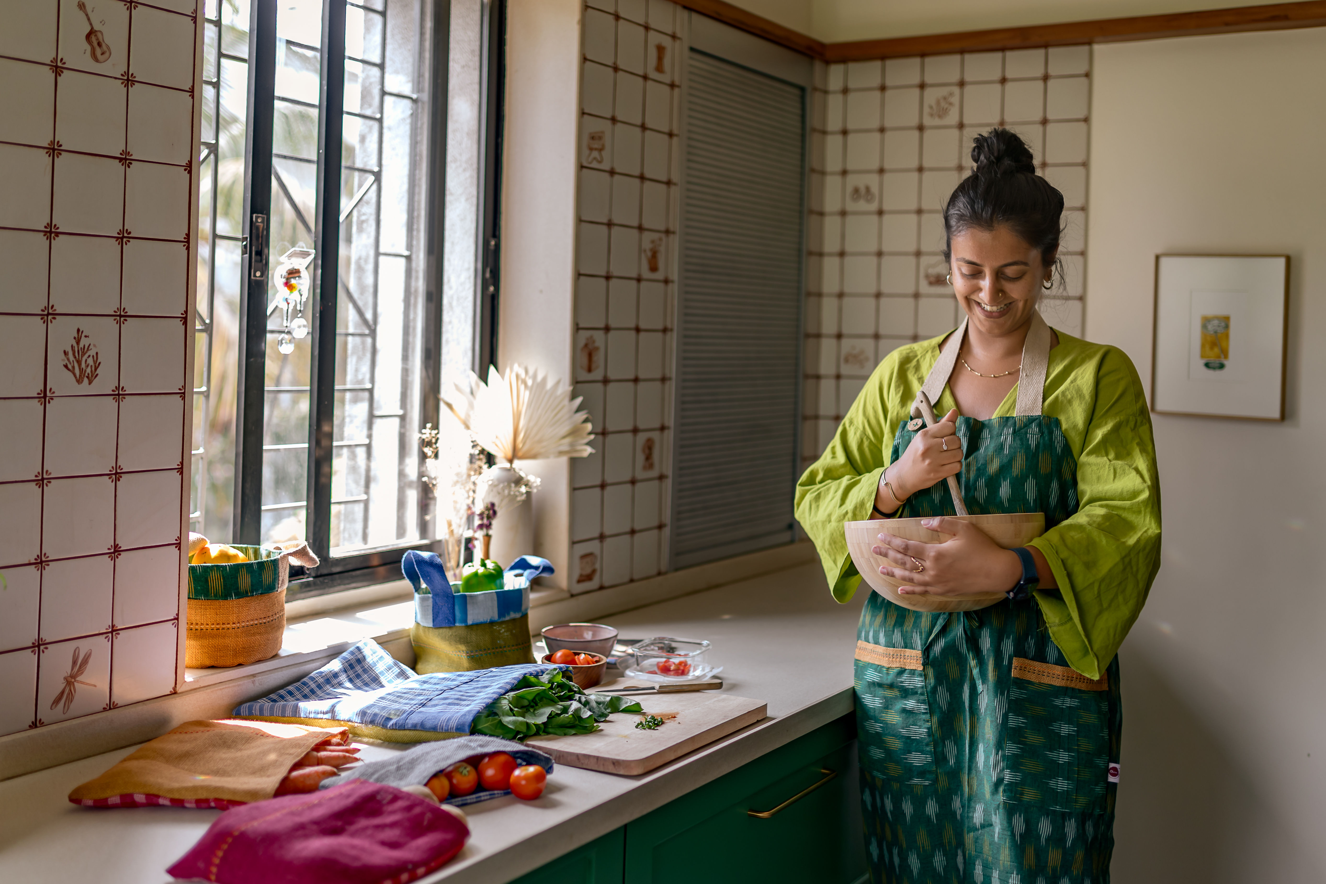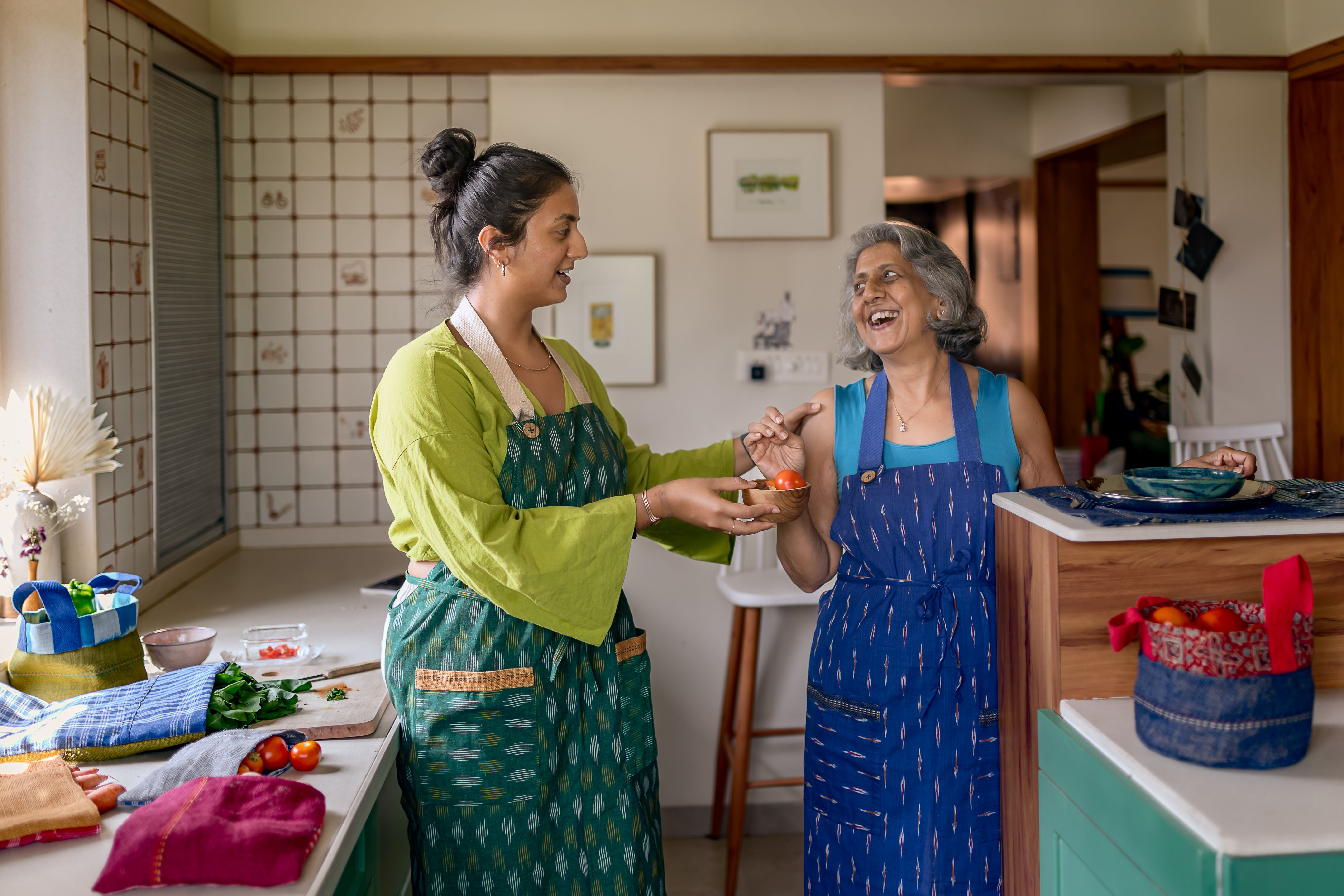 - Ikat from Telangana: This unique dyeing technique offers vibrant patterns and a soft texture, sourced directly from the homes of our weaving partners in Telangana.