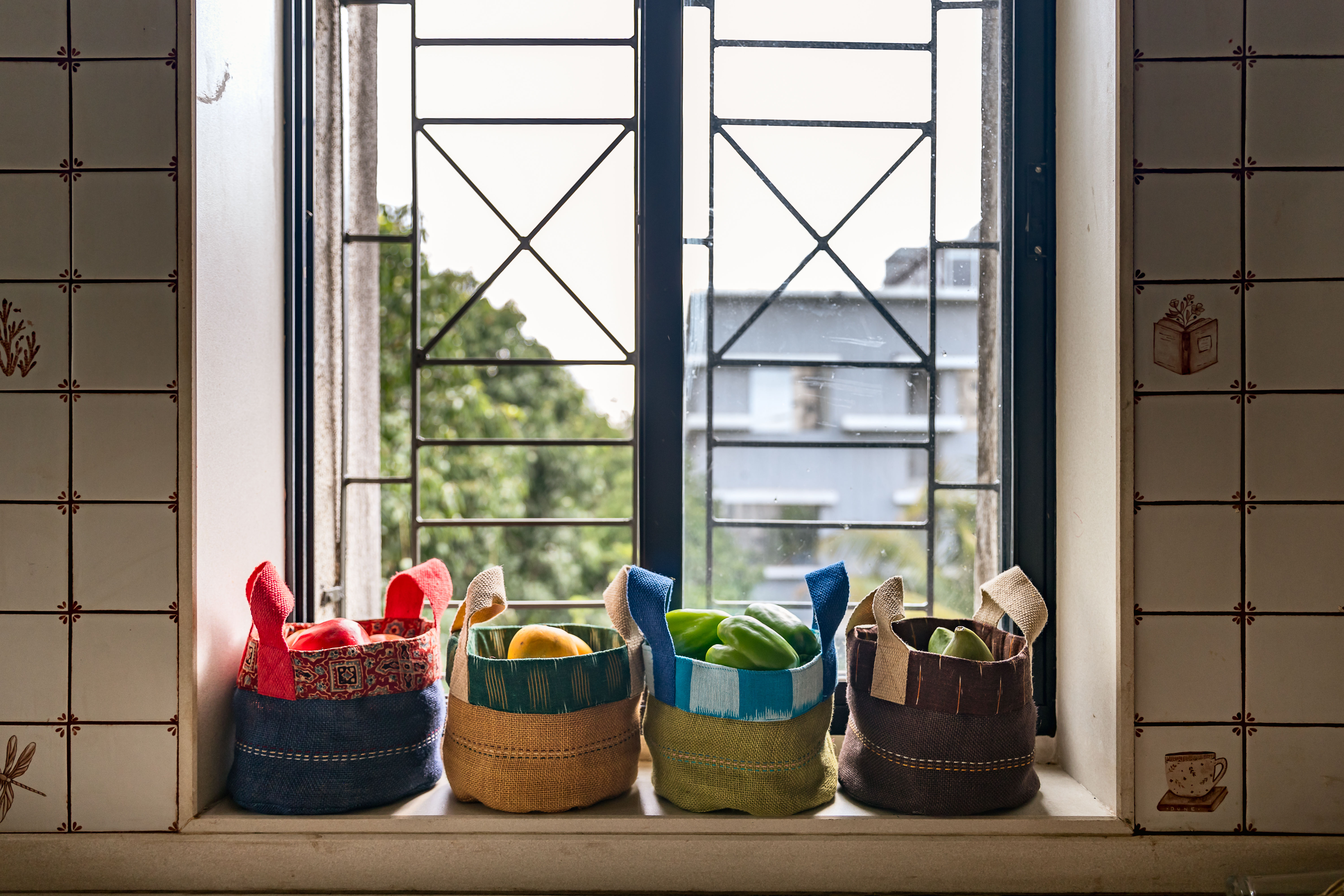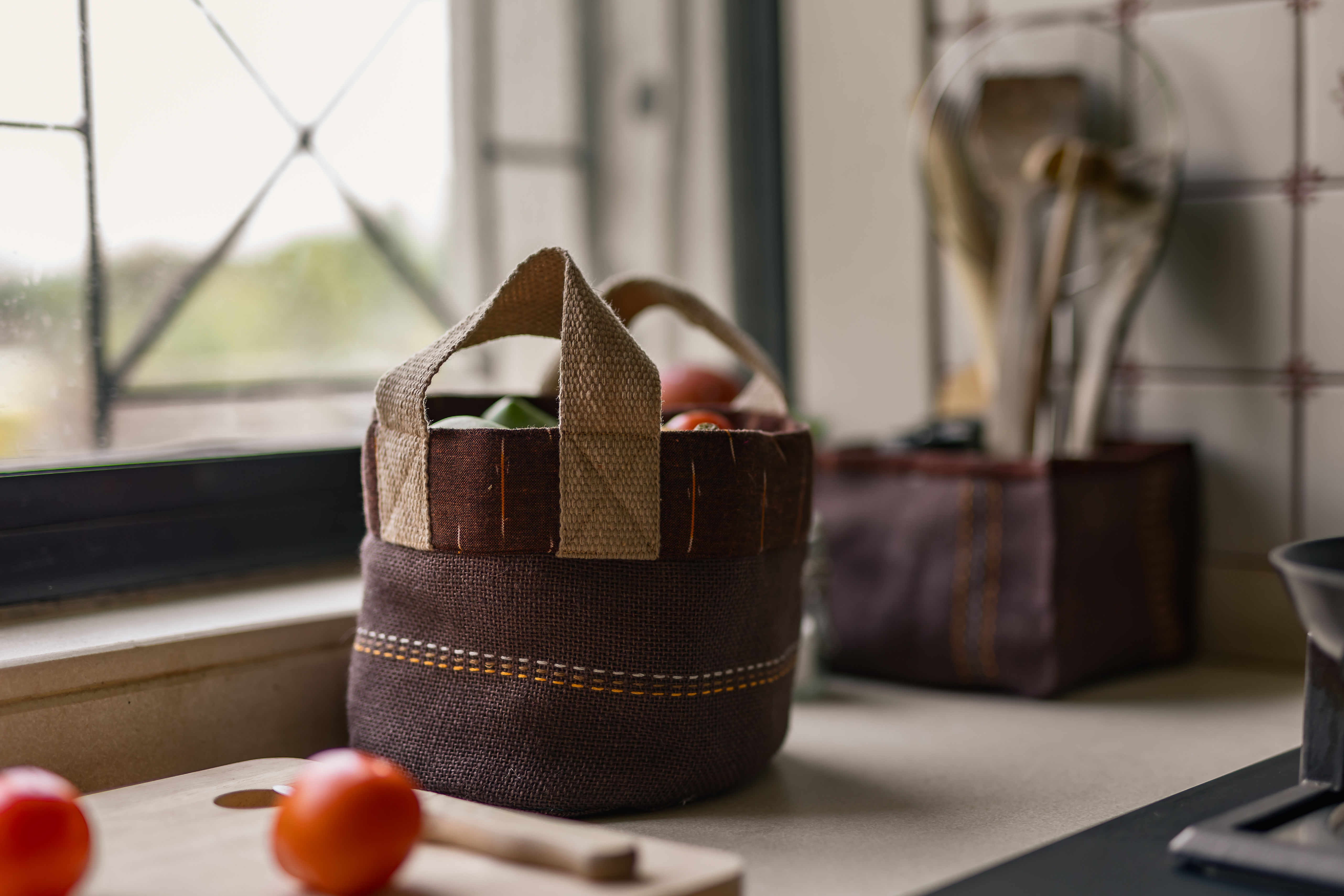 - Jute from Bengal: Renowned for its durability and eco-friendliness, jute adds a rustic charm and robustness to our products, making them both sustainable and long-lasting. We line our jute with cotton fabric, not plastic!