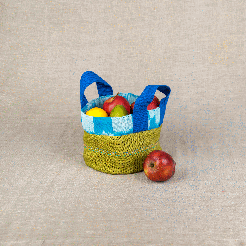 A handcrafted storage solution that combines traditional Indian artistry with modern functionality. Made from sustainable organic jute and cotton, this intricately embroidered basket is perfect for organizing your home in style. Whether used for storing toys, magazines, stationary, sewing, knitting, bathroom accessories or craft supplies or holding planters or bread, the Dala Basket adds a touch of elegance to any room. Its sturdy construction ensures durability, while the vibrant patterns and colors bring warmth and personality to your space. Elevate your home decor with the timeless charm and practical versatility of the Dala Basket.