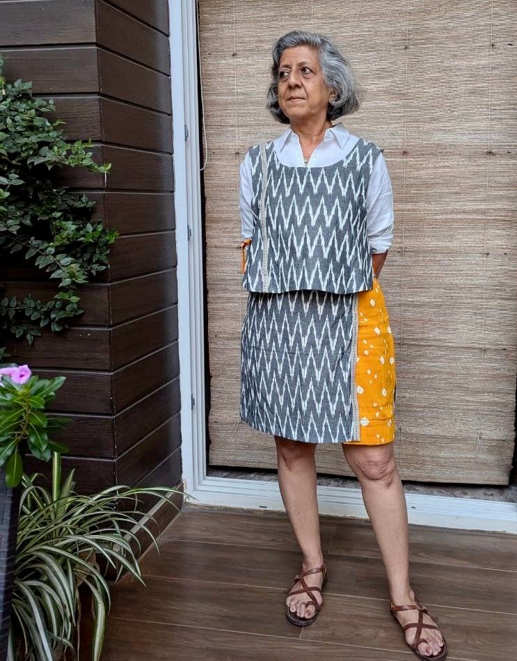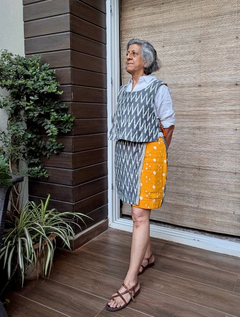 Made from soft, breathable handwoven cotton fabric, the outfit ensures comfort throughout the day, whether you’re dressing up for a special occasion or adding a chic layer to your everyday outfit. The unique vertical jute trim embellished with our signature kantha embroidery, adds a touch of handcrafted sophistication.